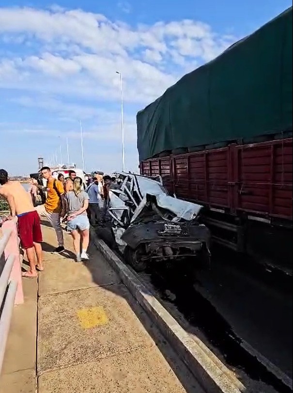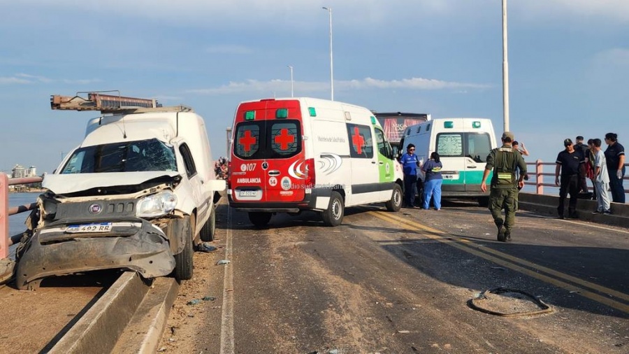 El incidente vial se produjo en la bajada del puente del lado chaqueño, cuando un camión hacía el trayecto desde Corrientes hacia Resistencia, por circunstancias que se investigan arrolló desde atrás a varios vehículos que circulaban a una velocidad menor.
