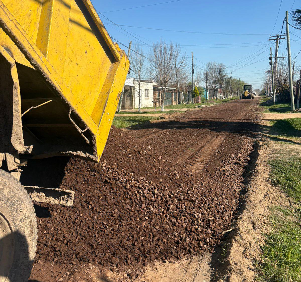 El Municipio de Santa Lucía continúa con las obras de mejoramiento en calles de diferentes barrios de la ciudad. Equipos de trabajadores municipales llevan a cabo trabajos de enripiado con el objetivo de brindar buena transitabilidad y escurrimiento del agua de lluvia en las arterias de los barrios Esperanza y 13 de Abril, entre otros.