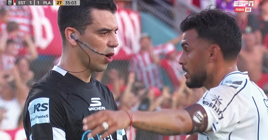 DeportesNacho Vázquez protesta al árbitro tras el gol de Alario en partido de Platense 21 de diciembre de 2025