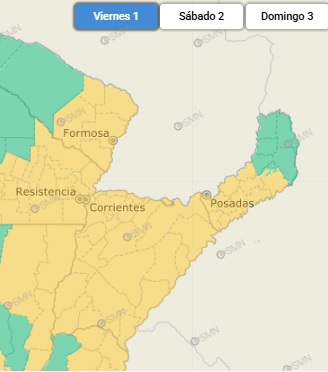 Para el fin de semana, especialmente el sábado, se esperan precipitaciones y tormentas en localidades del centro-sur correntino como Goya, Mercedes, Paso de los Libres, Curuzú Cuatiá, Monte Caseros y zonas cercanas.