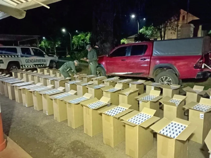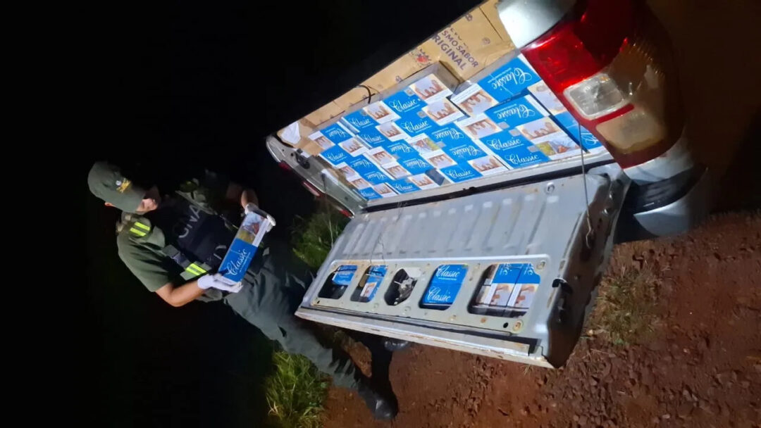 Posteriormente, los gendarmes hallaron el vehículo sobre la banquina del corredor vial, sin ocupantes y con un total de 20.000 paquetes de cigarrillos de origen extranjero distribuidos entre el compartimiento de carga y el habitáculo.
