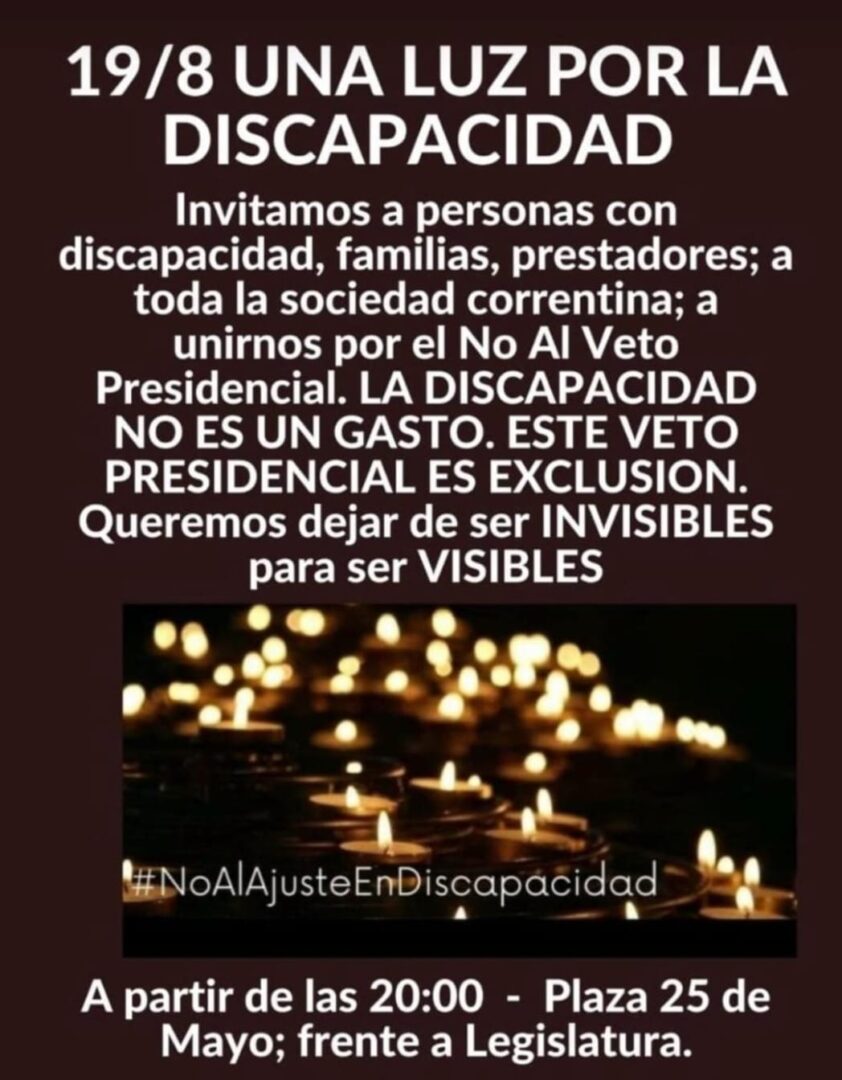 Con la frase “Una luz por la discapacidad” cientos de personas compartieron la convocatoria a la marcha sosteniendo que “la discapacidad no es un gasto, el veto presidencial es una exclusión. Queremos dejar de ser invisibles para ser visibles”.