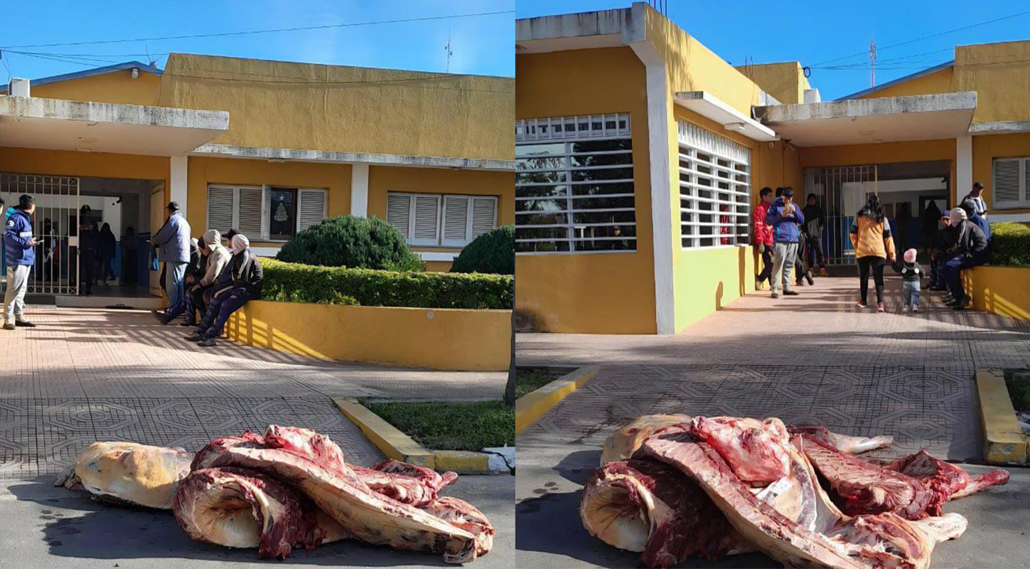 La inusual protesta ocurrió en la localidad correntina de San Miguel, donde un carnicero descargó varios kilos de carne en la vía pública, frente al ingreso del edificio municipal ubicado sobre calle Melchor J. Mesa.