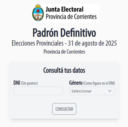 Los ciudadanos y ciudadanas podrán consultar, ingresando a la página https://padron.corrientes.gob.ar allí cargar su número de Documento Nacional de Identidad (DNI) sin los puntos, especificar el género y luego aplicar el botón de consulta.