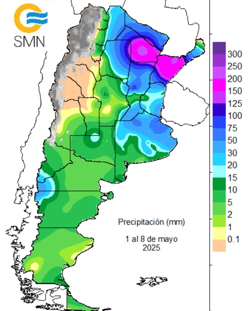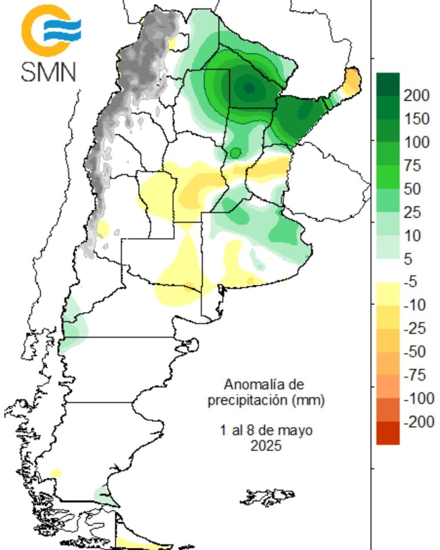 El informe emitido por el SMN mostró que en el período comprendido entre el 1 y el 8 de mayo (ocho días) se superó la media de lluvias mensuales.