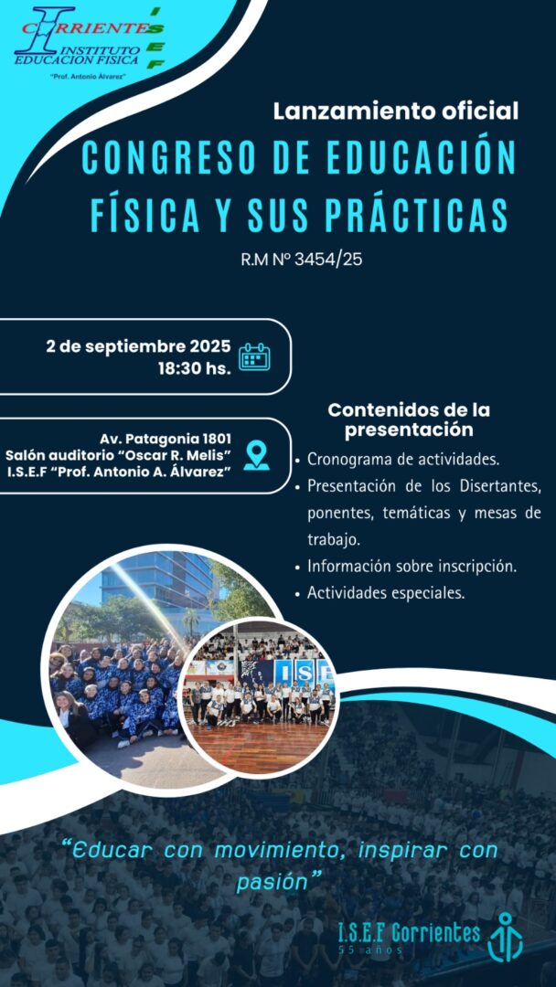 La presentación será en el auditorio del Instituto Superior de Educación Física (ISEF) “Profesor Antonio A. Álvarez” ubicado en avenida Patagonia 1801 de la ciudad de Corrientes.