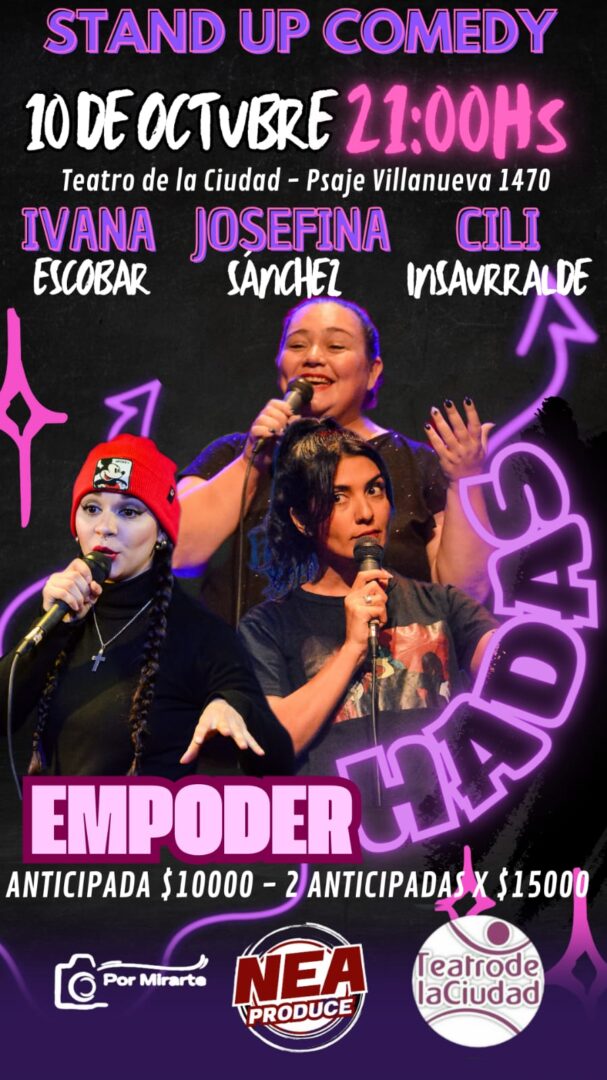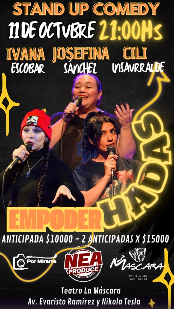 El fin de semana largo, el show de stand up “EmpoderHadas” llegará a Corrientes y Resistencia con temas cotidianos que harán reír al público. El elenco 100% femenino conformado por Josefina Sánchez, Cecilia “Cili” Insaurralde e Ivana Noelí Escobar, contarán al pueblo correntino y chaqueño sus anécdotas y vivencias del día con una pizca de humor.