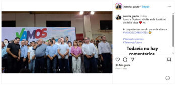 Se tratan del Jefe Comunal de Esquina, Hugo Benítez; y de la intendenta de Mercedes, Juana Gauto; que ya acompañan a los hermanos Gustavo y Juan Pablo Valdés en actos y presentaciones de la alianza Vamos Corrientes.
