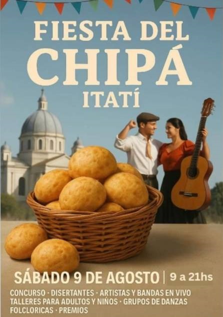 El sábado 9 de agosto en la localidad correntina de Itatí se llevará a cabo la primera edición de la Fiesta del Chipá, iniciativa que busca hacer honor a la cultura culinaria local. Tendrá lugar en la plaza central de 9 a 21 horas y habrá concursos, premios, talleres y shows en vivo.