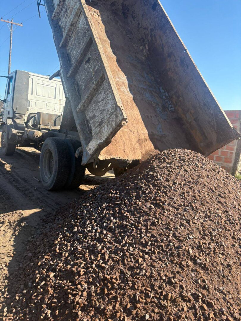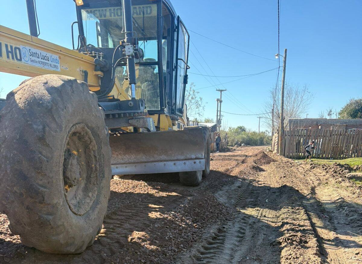 La Municipalidad de Santa Lucía continúa con la implementación de políticas de obras de mejoramiento para los barrios de la ciudad; en este caso avanza con obras de enripiado en el barrio El Polvorete.