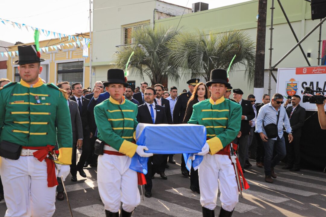 A pesar de la idas y venidas burocráticas de último momento, entre la Comisión Nacional de Lugares y Museos Históricos y el Gobierno de Corrientes, la urna conteniendo los restos del Granadero Correntino llegaron a la ciudad de Saladas.