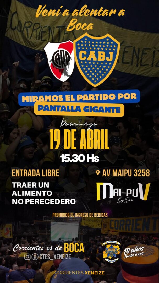 La Peña de Boca en Corrientes organizó una convocatoria solidaria abierta a todos hinchas Xeneizes para compartir el superclásico del futbol argentino entre Boca Juniors y River Plate este domingo 19 de abril.